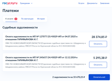 Требования выставлены приставами г. Шадринска. Дата. Сначала на сумму 28374,85 , чуть позже на 5292,38. Сумма на 5292,38. висела без обработки. Без поиска Ответчика. Непонятно как появилось следующая задолженность, теперь на 28374,85. Эту задолженность приставы пустили в своё дело. Нашли Ответчика просто написав на e-mail.